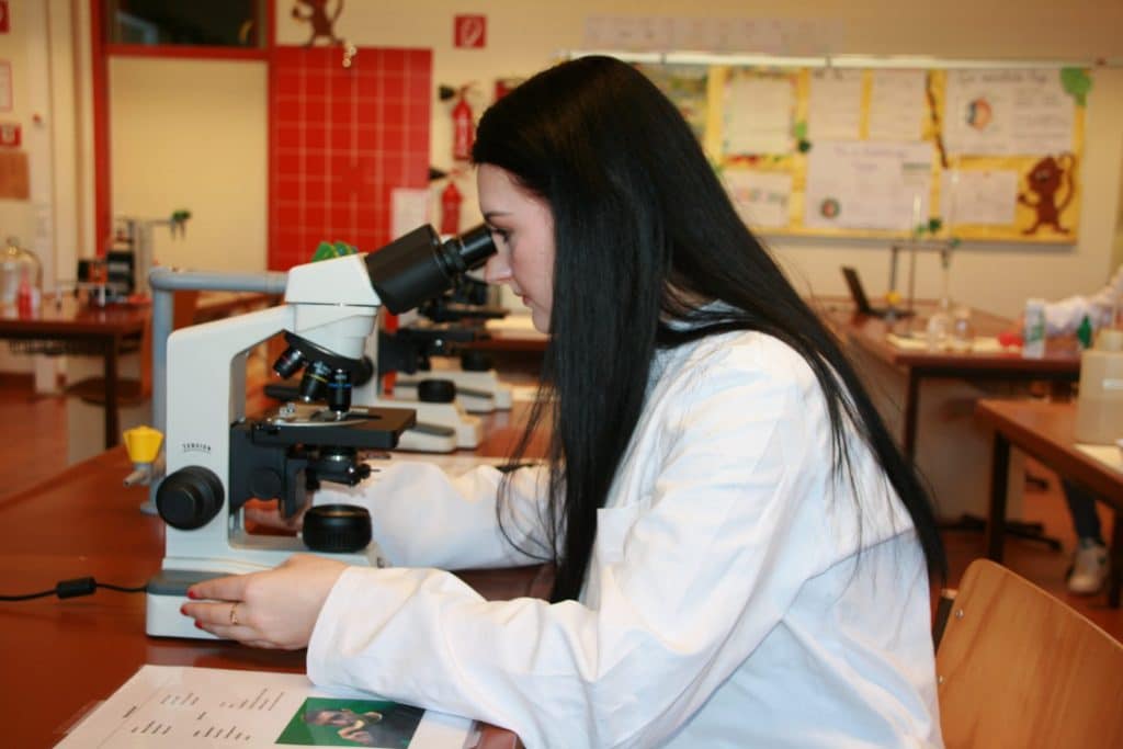 Ein weiterer Fixpunkt für die Gäste war ein Besuch im Chemie-Saal. Die BORG Schüler/innen hatten mit Unterstützung von Herrn Prof. Lukas und Frau Prof. Forstner eine Reihe von spannenden Versuchen zum Herzeigen und zum selbst Ausprobieren vorbereitet. Auch das Filmteam zog viel Aufmerksamkeit auf sich. Nach ausführlichen Informationen über das Wahlpflichtfach hatten die Besucher/innen die Aufgabe, sich vor den aufgebauten Greenscreen zu stellen und ein Live-Video von sich selbst anzusehen. Nicht wie erwartet sahen sie sich vor einem grünen Hintergrund, sondern vor abwechselnden, farbenfrohen und dynamischen Hintergründen. Anschließend wurde eine kurze Erklärung, wie die Greenscreen-Technik funktioniert, gegeben.