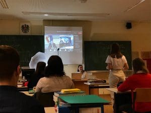Nach diesen spannenden Erzählungen hatten wir die Ehre, gemeinsam mit sechs anderen Schulen aus der ganzen Steiermark, Fragen zu stellen. Im Vorfeld wurden diese im Rahmen des Biologieunterrichts erarbeitet.